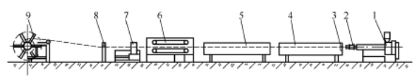 図1からわかるように、パイプ押出の下流設備は主に冷却水タンクと、引き取りユニット, カッター, コイラー、またはダンプテーブル。