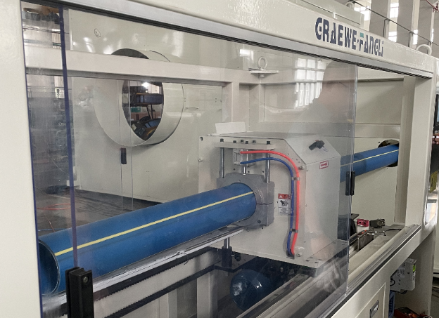 第 4 に、パイプはキャタピラ牽引ユニットによって牽引され、カッターに送られ、そこでパイプが事前に設定された長さに従って切断されます。同時に除塵装置により切削粉を除去します。